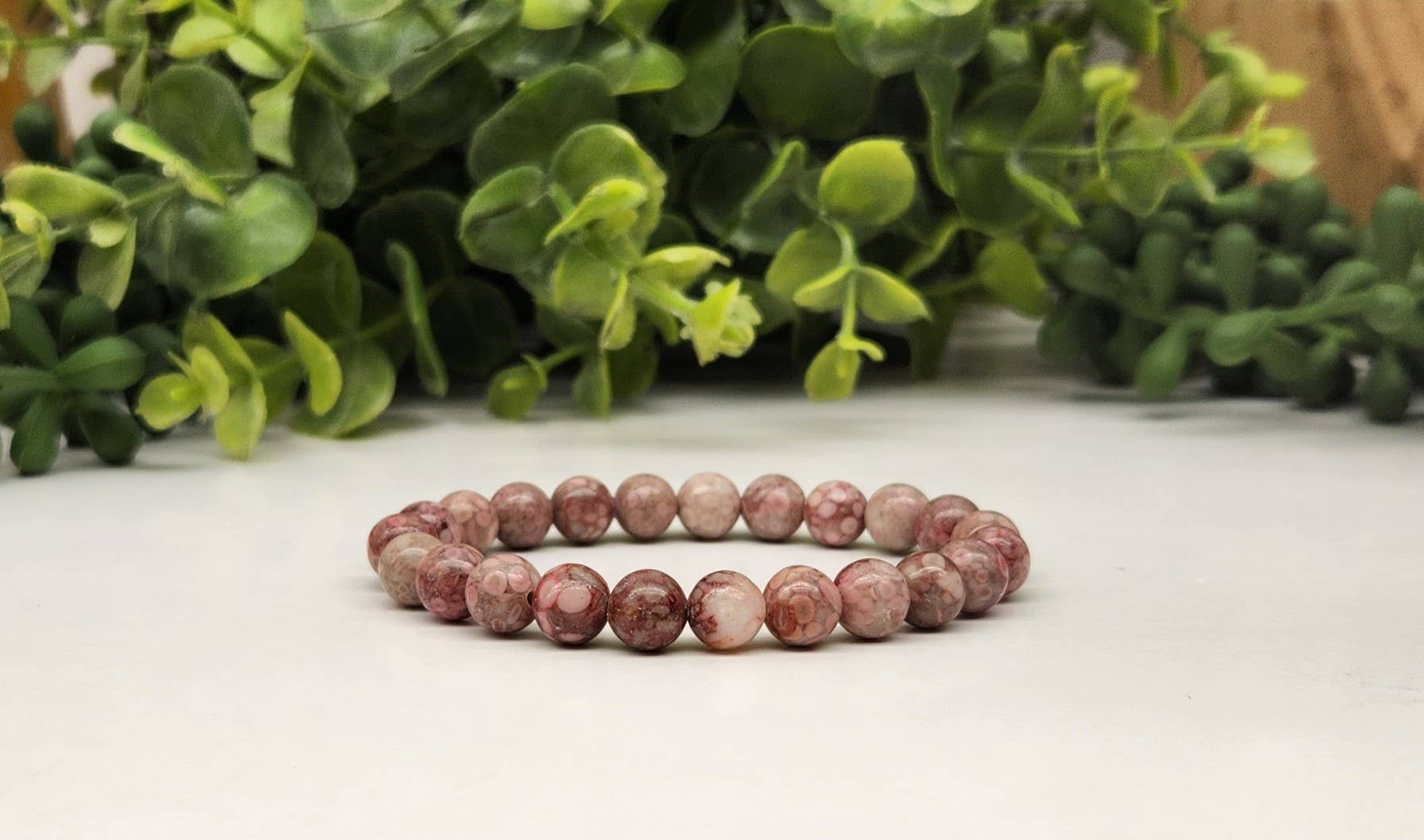 Chrysanthemum Stone Stretchable Bracelet 8mm beads-7.5"
