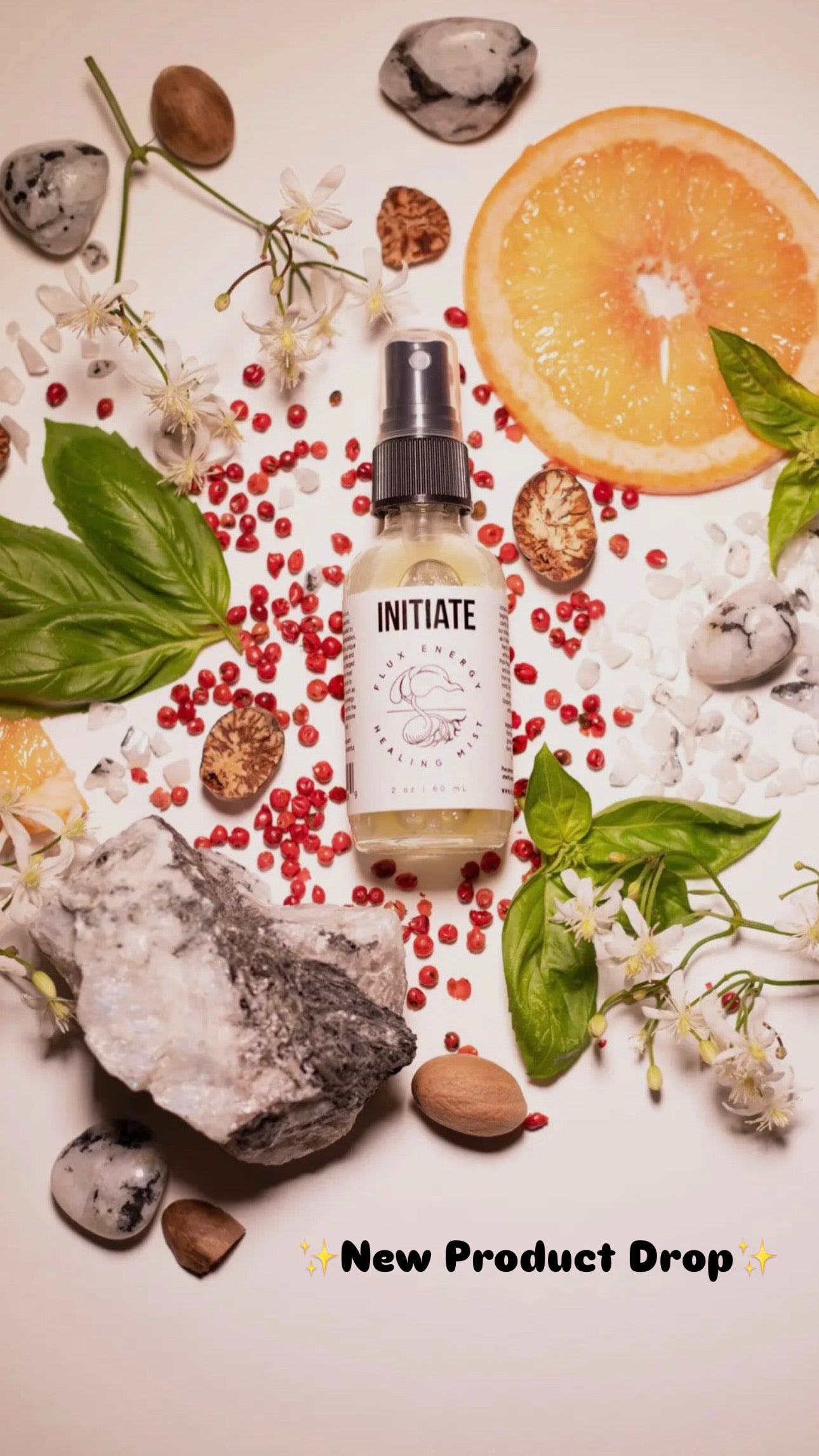 Initiate Healing Mist amplifies new beginnings while increasing mental clarity. Rainbow Moonstone aligns our chakras for energy to flow evenly as it raises awareness and intellect. Neroli invokes joy and happiness while decreasing cortisol levels. Pink Peppercorn enhances alertness and stamina. Basil provides relief from mental fatigue as it uplifts the mind. Nutmeg supports motivation and lowers blood pressure. Grapefruit increases mental focus while boosting circulation.