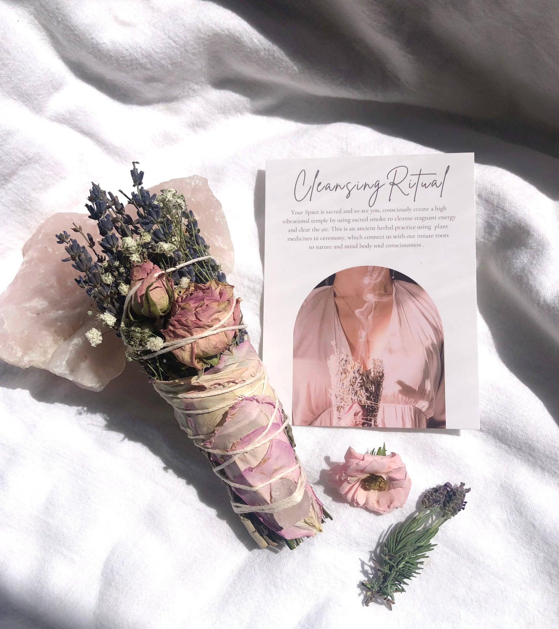 Love Sage Bundle Rose Quartz Cleansing aura & sacred space